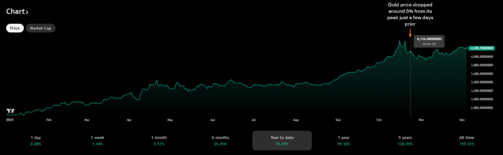 XAUt and Paxos’ PAXG (another tokenized form of gold) together make up around 90% of the entire tokenized gold market, which is still small ($3–3.9 billion total), but growing. XAUt leads with about 49–54% market share.