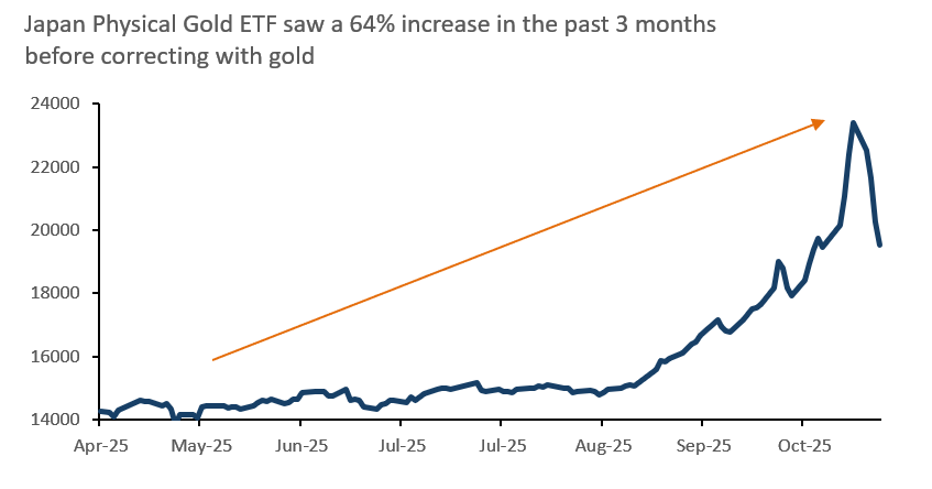 And while Japan’s retail boom is currently showing in ETFs and queues at brick-and-mortar stores, we wouldn’t be surprised to see digital gold apps take off there too, especially as younger investors look for easier ways to escape yen depreciation.
