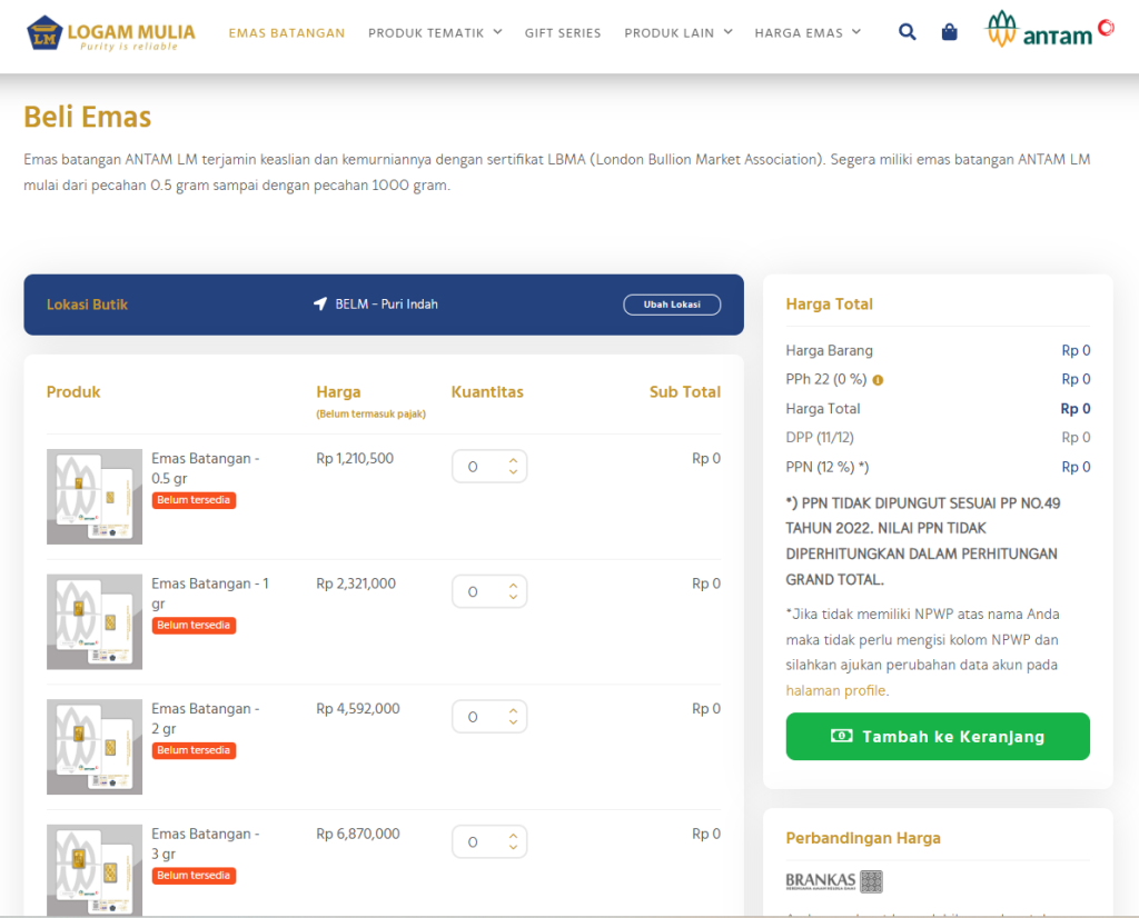 - On the official ANTAM website, gold remains sold out across all denominations.