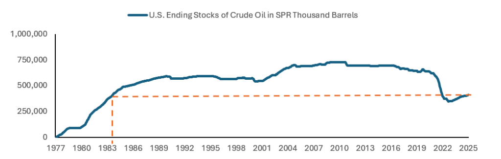U.S emergency stockpile is as low as it was in the 1980s. This gives the U.S. less flexibility in a crisis and weaker leverage against OPEC+ adversaries