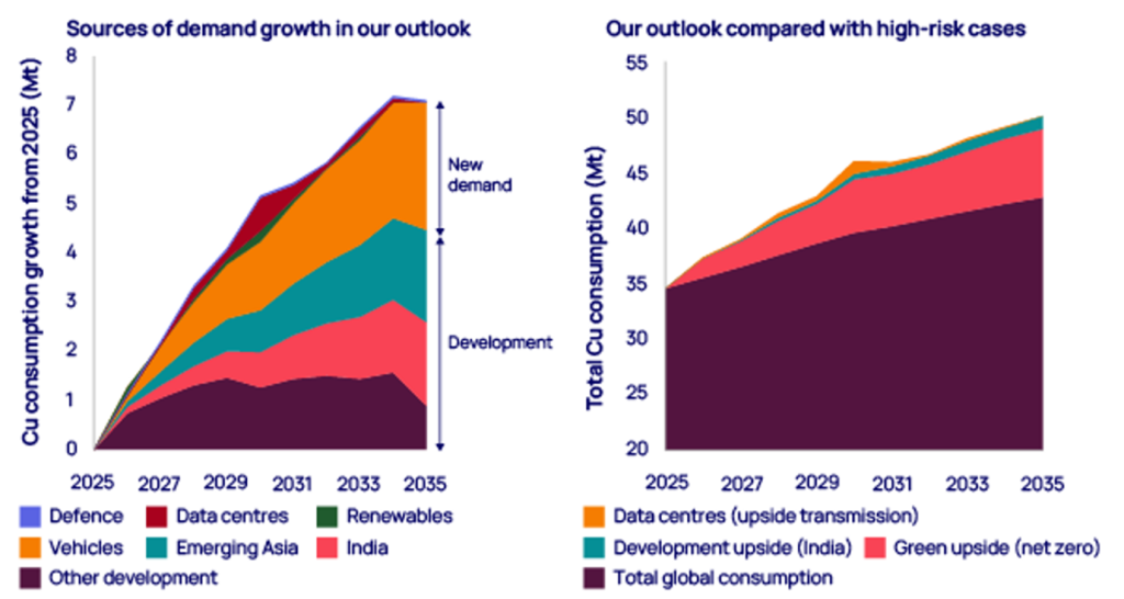 Between now and 2035, copper demand is projected to rise 24 percent, hitting 43 million tons. And this time, it’s not the old industrial cycle. It’s the future coming online.