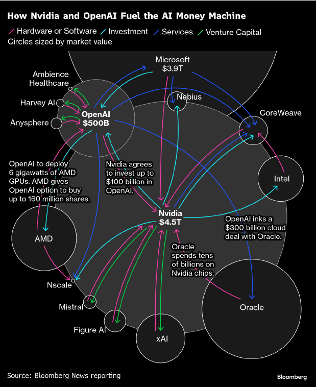Let’s talk about the AI money machine. According to Bloomberg, here’s what the current capital flow looks like: