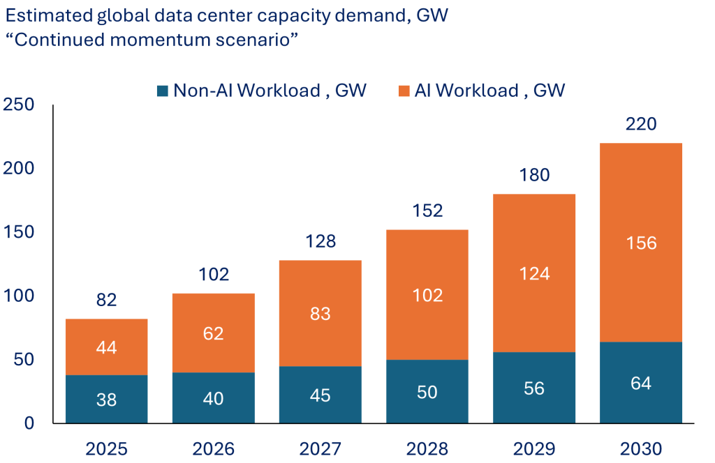 Data centres alone are projected to consume 1,600 TWh of electricity by 2035, which is the equivalent to 4.4% of global power use. That would make “AI” the world’s fourth-largest electricity consumer behind the U.S., China, and India.
